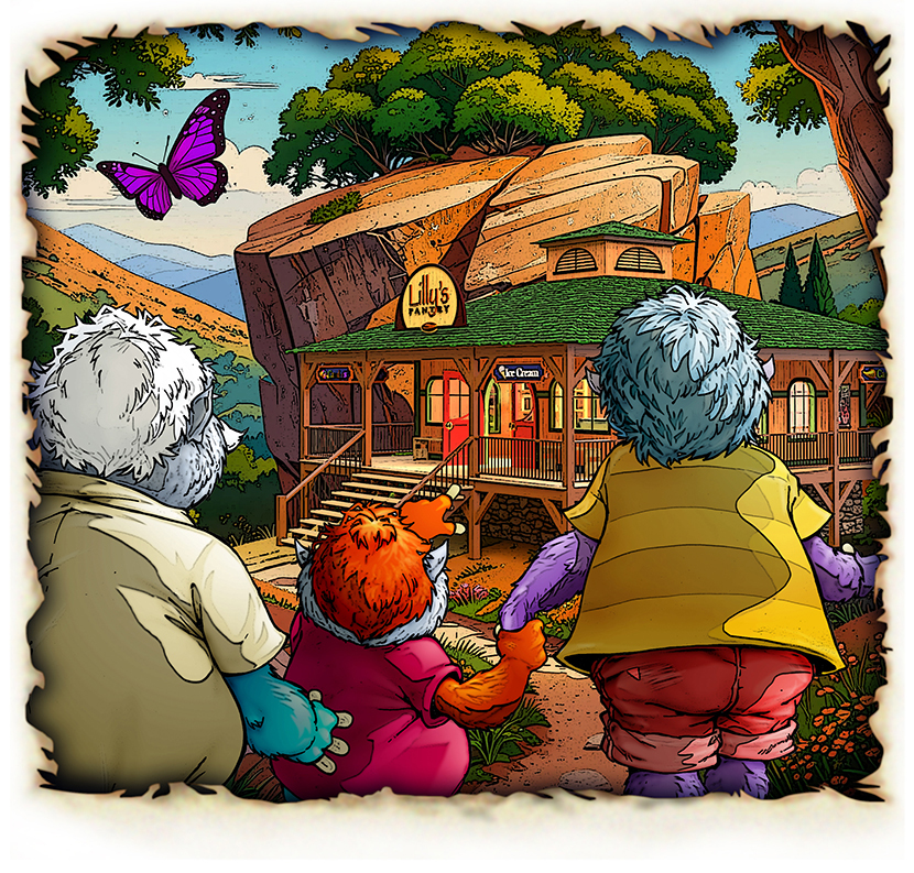 Through the back door and down the dirt path to the store by the big orange rock.