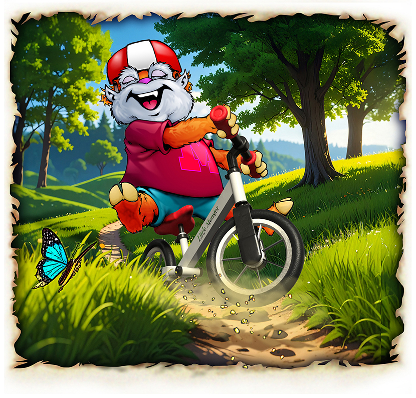 Zooming and zipping and buzzing along and wishing his bike had some wings.